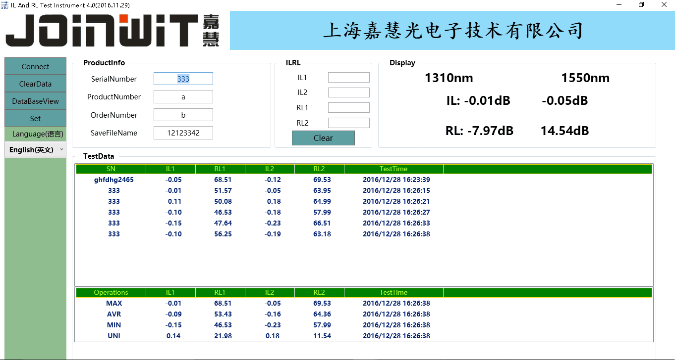 ①在测量回损及插损过程中无需任何按键操作,双波长回损/插损值同一个液晶窗口显示,测试结果一目了然。